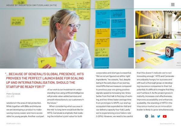 “... BECAUSE OF GENERALI ’ S GLOBAL PRESENCE , HITS PROVIDES THE PERFECT LAUNCH BASE FOR SCALING UP AND INTERNATIONALISATION , SHOULD THE STARTUP BE READY FOR IT ”