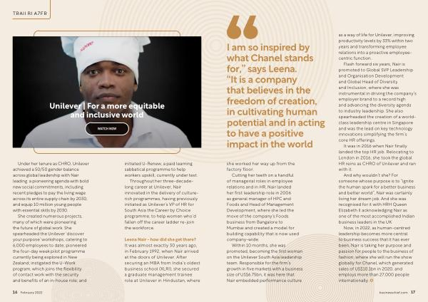 Now , in 2022 , as human-centred leadership becomes more central to business success that it has ever been , Nair is taking her purpose and passion for people to the business of fashion , where she will run the show globally for Chanel , which generated sales of US $ 10.1bn in 2020 , and employs more than 27,000 people internationally . businesschief . com 17