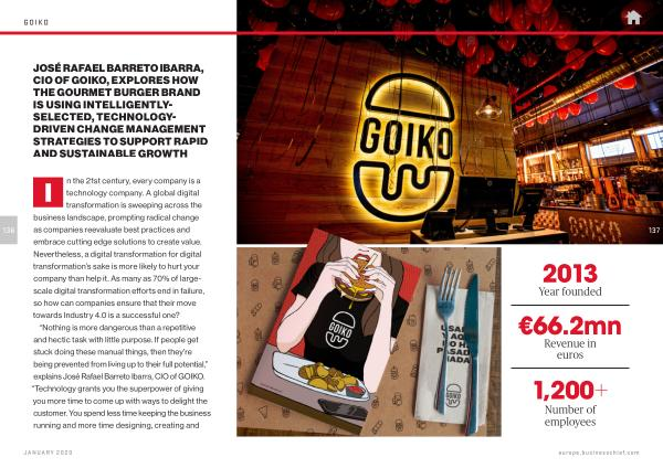 JOSÉ RAFAEL BARRETO IBARRA , CIO OF GOIKO , EXPLORES HOW THE GOURMET BURGER BRAND IS USING INTELLIGENTLY- SELECTED , TECHNOLOGY- DRIVEN CHANGE MANAGEMENT STRATEGIES TO SUPPORT RAPID AND SUSTAINABLE GROWTH