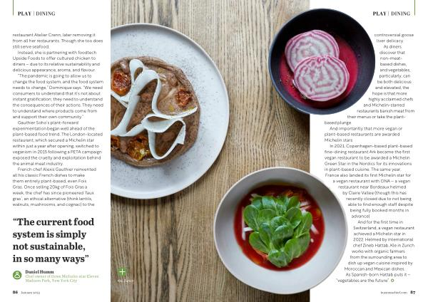 Gauthier Soho ’ s plant-forward experimentation began well ahead of the plant-based food trend . The London-located restaurant , which secured a Michelin star within just a year after opening , switched to veganism in 2015 following a PETA campaign exposed the cruelty and exploitation behind the animal meat industry .