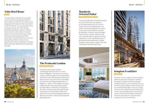 The second Mandarin Oriental property to reach Dubai , this one will be a 63-storey property with 257 rooms , suites and serviced apartments . It is said to have been designed to ‘ reflect local culture , with features inspired by Mandarin Oriental ’ s Asian heritage ’. Three will be ‘ a lively rooftop sky bar with citywide views , a signature dining experience , an all-day dining venue , a poolside bar and restaurant , a lobby lounge , a club lounge , a cigar room and a Mandarin Oriental Cake Shop ’.