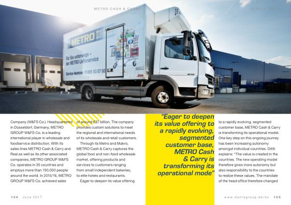 & Carry is transforming its operational mode ” to a rapidly evolving , segmented customer base , METRO Cash & Carry is transforming its operational model . One key step on this ongoing journey has been increasing autonomy amongst individual countries . Dittli explains : “ The value is created in the countries . The new operating model therefore gives more autonomy but also responsibility to the countries to realize these values . The mandate of the head office therefore changed