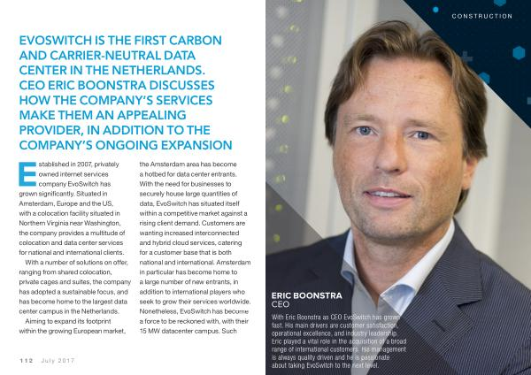 EVOSWITCH IS THE FIRST CARBON AND CARRIER-NEUTRAL DATA CENTER IN THE NETHERLANDS . CEO ERIC BOONSTRA DISCUSSES HOW THE COMPANY ’ S SERVICES MAKE THEM AN APPEALING PROVIDER , IN ADDITION TO THE COMPANY ’ S ONGOING EXPANSION