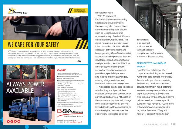 SERVICE WITH A UNIQUE TOUCH Nonetheless , with larger chain corporations building an increased number of data centers worldwide , there is a danger of compromising the level and quality of customer service . With this in mind , listening to customer requirements is an area of particular focus at EvoSwitch , which is clear through the company ’ s tailored services to meet specific customer requirements . “ Customers will never become a number with us ,” adds Boonstra . “ They will have 24-7 support with a human