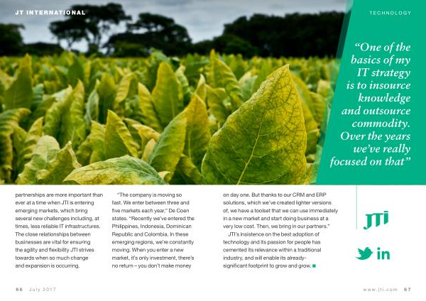 partnerships are more important than ever at a time when JTI is entering emerging markets , which bring several new challenges including , at times , less reliable IT infrastructures . The close relationships between businesses are vital for ensuring the agility and flexibility JTI strives towards when so much change and expansion is occurring .