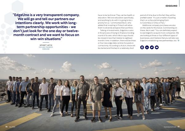 Additional company purchases are also on the cards for the future . Commenting on these , Akcin said : “ You can definitely expect to see EdgeUno acquire more companies . We are looking at three or four different types of businesses , and I believe that you will also see EdgeUno establishing new partnerships , too .”