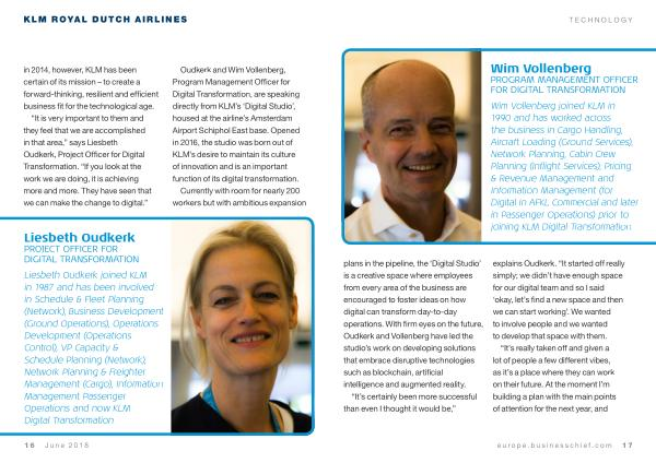 Oudkerk and Wim Vollenberg , Program Management Officer for Digital Transformation , are speaking directly from KLM ’ s ‘ Digital Studio ’, housed at the airline ’ s Amsterdam Airport Schiphol East base . Opened in 2016 , the studio was born out of KLM ’ s desire to maintain its culture of innovation and is an important function of its digital transformation .