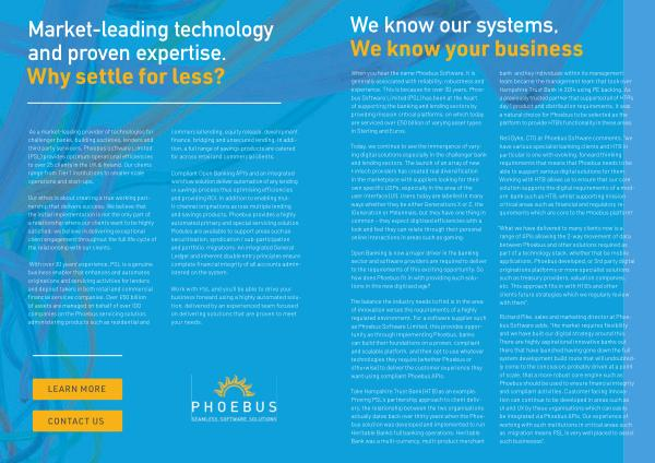 As a market-leading provider of technologies for challenger banks , building societies , lenders and third party servicers , Phoebus Software Limited ( PSL ) provides optimum operational efficiencies to over 25 clients in the UK & Ireland . Our clients range from Tier 1 institutions to smaller scale operations and start-ups .