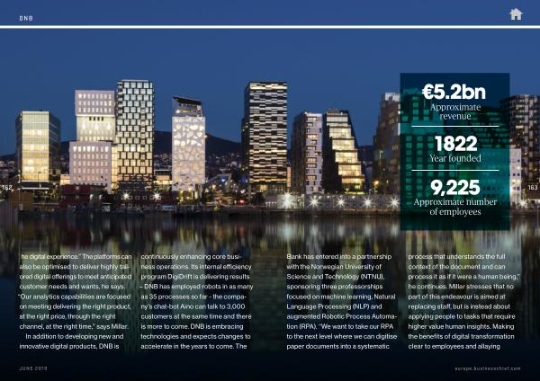 Bank has entered into a partnership with the Norwegian University of Science and Technology ( NTNU ), sponsoring three professorships focused on machine learning , Natural Language Processing ( NLP ) and augmented Robotic Process Automation ( RPA ). “ We want to take our RPA to the next level where we can digitise paper documents into a systematic process that understands the full context of the document and can process it as if it were a human being ,” he continues . Millar stresses that no part of this endeavour is aimed at replacing staff , but is instead about applying people to tasks that require higher value human insights . Making the benefits of digital transformation clear to employees and allaying
