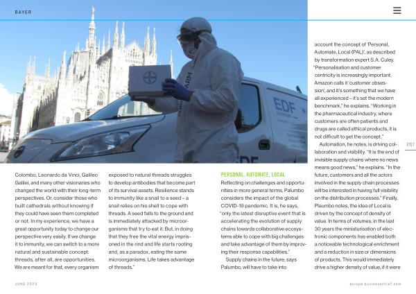 Colombo , Leonardo da Vinci , Galileo Galilei , and many other visionaries who changed the world with their long-term perspectives . Or , consider those who built cathedrals without knowing if they could have seen them completed or not . In my experience , we have a great opportunity today to change our perspective very easily . If we change it to immunity , we can switch to a more natural and sustainable concept : threads , after all , are opportunities . We are meant for that , every organism exposed to natural threads struggles to develop antibodies that become part of its survival assets . Resilience stands to immunity like a snail to a seed – a snail relies on his shell to cope with threads . A seed falls to the ground and is immediately attacked by microorganisms that try to eat it . But , in doing that they free the vital energy imprisoned in the rind and life starts rooting and , as a paradox , eating the same microorganisms . Life takes advantage of threads .”