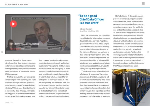 The first is crucial for any enterprise embarking on such a journey and starts with one straightforward question : what is your company ’ s monetisation strategy ? This is , says Bhandari , key to a successful data strategy . “ Any data strategy has to be tied to the business strategy , and that revolves around how the company is going to make money , maximise business impact , and delight customers ,” he explains . “ In IBM ’ s case it was clear that we were going to make money primarily from best-in-class AI and hybrid multi-cloud offerings . But it wasn ’ t clear what AI meant for an enterprise or how to go about it . Thus we thought why not make IBM itself into an AI enterprise and use it as a showcase for our clients .” Bhandari created a dedicated team that consists of world-class data and AI specialists who collaborate across the entire business .