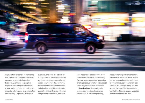 Jaap Bruining : Innovations in technology continue to advance capabilities in business planning , measurement , operations and more . Advanced AI solutions , better freight market forecasting tools , technology to streamline supply chain and blockchain as a viable operating system were at the top of the supply chain wish list for shippers , Coyote Logistics ’ research revealed last year .