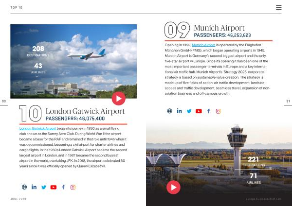 Opening in 1992 , Munich Airport is operated by the Flughafen München GmbH ( FMG ), which began operating airports in 1949 . Munich Airport is Germany ’ s second biggest airport and the only five-star airport in Europe . Since its opening it has been one of the most important passenger terminals in Europe and a key international air traffic hub . Munich Airport ’ s ‘ Strategy 2025 ’ corporate strategy is based on sustainable value creation . The strategy is made up of five fields of action : air traffic development , landside access and traffic development , seamless travel , expansion of nonaviation business and off-campus growth .