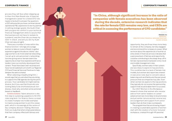Cristina Catania Talent attraction is the first step to sustaining a pipeline to fill CFO roles long term . For finance , there is a need to create multiple role model examples to inspire young women to join this career path , which is increasingly at the centre of key company decision-making . We know from our study that when employees believe that their company offers both fairness and