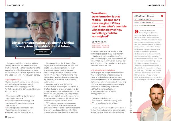 Digitising the bank ‘ Digitise the bank for improved efficiency and returns ’ is identified as one of Santander ’ s four strategic priorities for its Corporate and Commercial business which include :