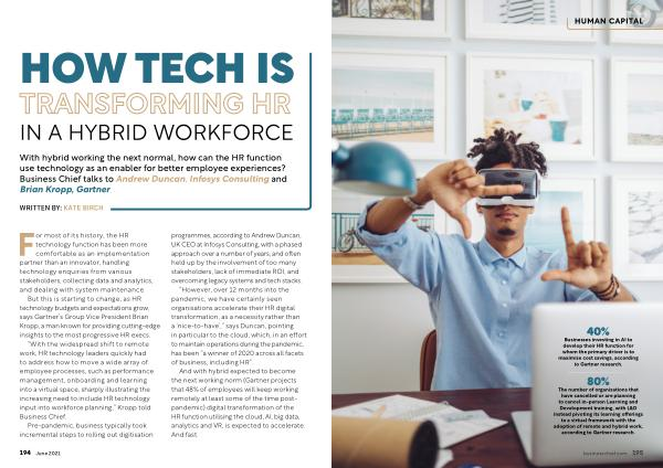 With hybrid working the next normal , how can the HR function use technology as an enabler for better employee experiences ? Business Chief talks to Andrew Duncan , Infosys Consulting and Brian Kropp , Gartner