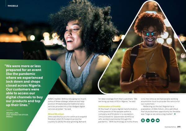 “ We were more or less prepared for an event like the pandemic where we experienced lock down and shops closed across Nigeria . Our customers were able to access our digital channels to buy our products and top up their lines .”