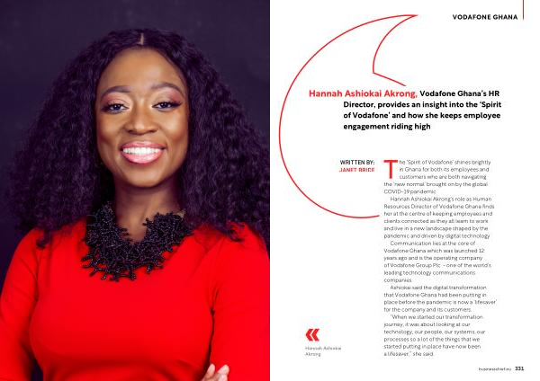 Hannah Ashiokai Akrong , Vodafone Ghana ’ s HR Director , provides an insight into the ‘ Spirit of Vodafone ’ and how she keeps employee engagement riding high