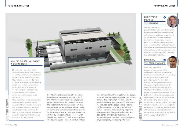 • Help Thésée better optimise the filling of the data centre and use full capacity - essential to the financial success of the data centre by HPE , integrating solutions from Future Facilities and New Generation with all of the information accessed via a single web portal . Thésée will offer the end customer the opportunity to manage their own data centre space via a web portal with access to all alarms and performance metrics , as well as the ability to interact with a virtual replica of their 3D space and have access to CFD simulation to assess IT deployment options . The 6Sigma Digital Twin is the only CFD tool