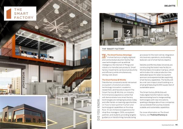 The Smart Factory @ Wichita Deloitte has convened a world-renowned ecosystem of solution providers , technology innovators , academic researchers , and futurists to launch The Smart Factory @ Wichita , an Industry 4.0 immersive experience center that will demonstrate how smart factory technologies are reshaping business today and offer hands-on learning opportunities on how to best partner human and technological capabilities on the shop floor . It ’ s an immersive experience for shop floor managers , CXOs , ecosystem partners , and students , providing tangible guidance on transforming manufacturing