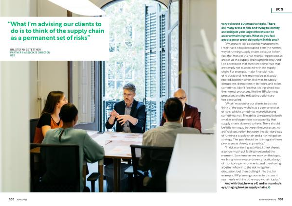 “ What I ' m advising our clients to do is to think of the supply chain as a permanent set of risks , which sometimes materialise and sometimes not . The ability to respond to both smaller and bigger risks is a capability that supply chains do need to have . There should be little to no gap between the processes , no artificial separation between the standard way of running a supply chain and a risk mitigation strategy . The goal should be to integrate those processes as closely as possible .”