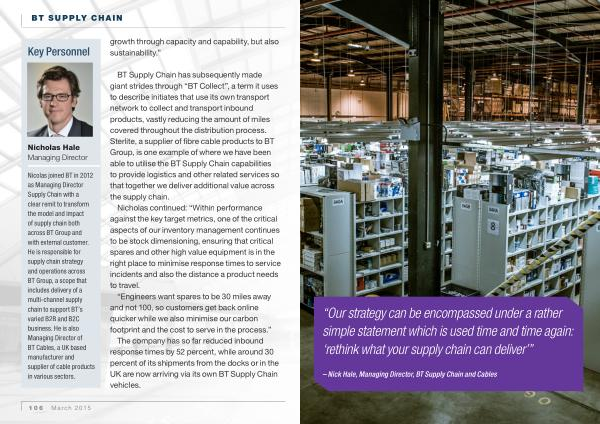 – Nick Hale , Managing Director , BT Supply Chain and Cables