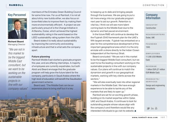 Beard concluded : “ We are not in this market to be the biggest Middle East consultant , but we want to be the leading consultant working on the sustainable projects in line with our company values . Our plans will continue to match the dynamism and growth in our geographical markets , working with key clients across the sectors .”
