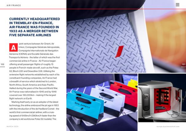 A joint venture between Air Orient , Air Union , Compagnie Générale Aéropostale , Compagnie Internationale de Navigation Aérienne ( CIDNA ) and Société Générale des Transports Aériens - the latter of which was the first commercial airline in France - Air France began offering small passenger flights of roughly 15 people in French-made aircraft , such as the Potez 62 , Bloch 220 and Dewoitine 338 . Utilising the extensive flight networks established by each of its constituent founding companies , Air France had a breadth of service which stretched to London , North Africa , South America and Asia-Pacific . Halted during the years of the Second World War , Air France was nationalised in 1945 and by 1948 covered over 160,000km - making it the largest flight network on Earth .