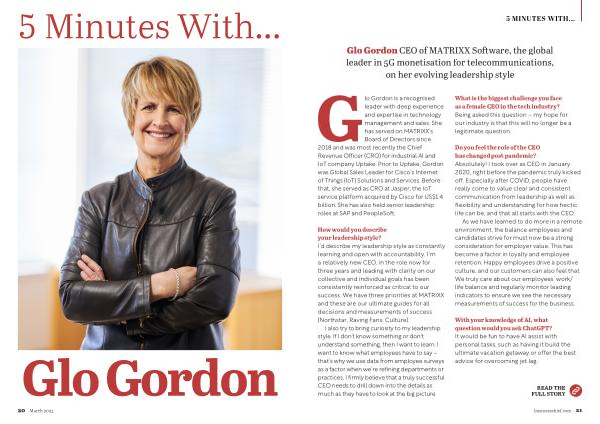 Glo Gordon CEO of MATRIXX Software , the global leader in 5G monetisation for telecommunications , on her evolving leadership style