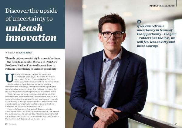 There is only one certainty in uncertain times – the need to innovate . We talk to INSEAD ’ s Professor Nathan Furr to discover how to reframe uncertainty to unleash possibility