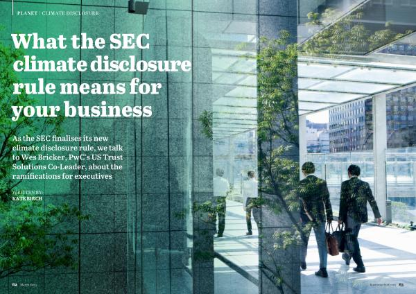 As the SEC finalises its new climate disclosure rule , we talk to Wes Bricker , PwC ’ s US Trust Solutions Co-Leader , about the ramifications for executives