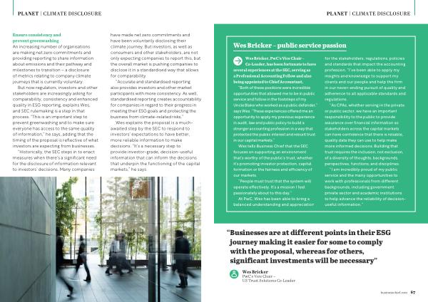 Wes explains the proposal is a muchawaited step by the SEC to respond to investors ’ expectations to have better , more reliable information to make decisions . “ It ’ s a necessary step to provide investor-grade , decision-useful information that can inform the decisions that underpin the functioning of the capital markets ,” he says .