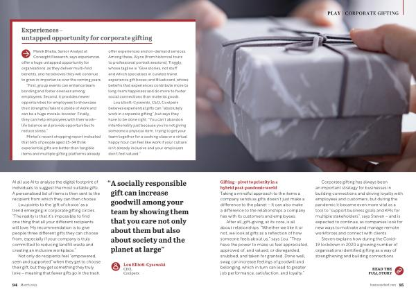 Gifting – pivot to priority in a hybrid post-pandemic world Taking a mindful approach to the items a company sends as gifts doesn ’ t just make a difference to the planet – It can also make a difference to the relationships a company has with its customers and employees .