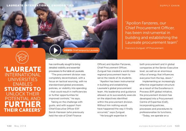 “ Apollon Fanzeres , our Chief Procurement Officer , has been instrumental in building and establishing the Laureate procurement team ” reate