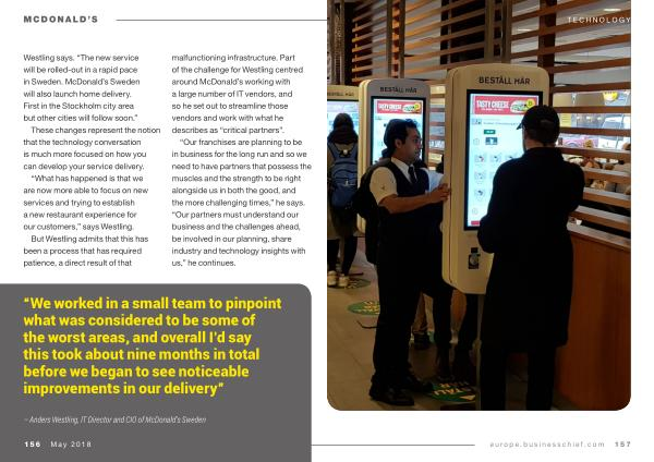 – Anders Westling , IT Director and CIO of McDonald ’ s Sweden