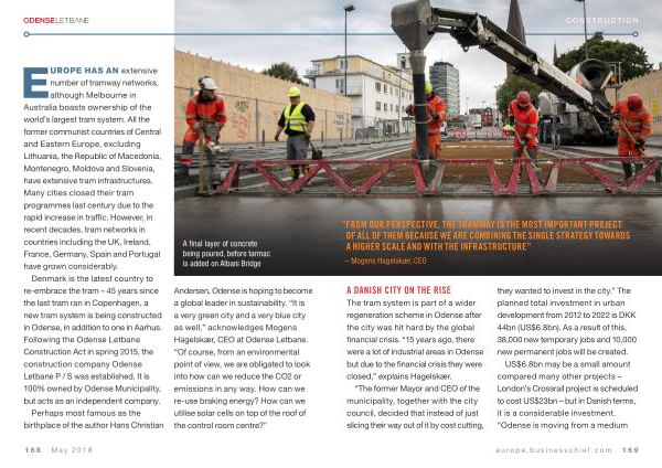 Andersen , Odense is hoping to become a global leader in sustainability . “ It is a very green city and a very blue city as well ,” acknowledges Mogens Hagelskær , CEO at Odense Letbane . “ Of course , from an environmental point of view , we are obligated to look into how can we reduce the CO2 or emissions in any way . How can we re-use braking energy ? How can we utilise solar cells on top of the roof of the control room centre ?”