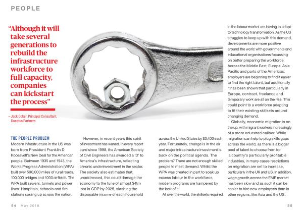 across the United States by $ 3,400 each year . Fortunately , change is in the air and major infrastructure investment is back on the political agenda . The problem ? There are not enough skilled people to meet demand . Whilst the WPA was created in part to soak up excess labour in the workforce , modern programs are hampered by the lack of it .