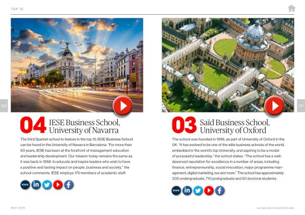 The third Spanish school to feature in the top 10 , IESE Business School can be found in the University of Navarra in Barcelona . “ For more than 60 years , IESE has been at the forefront of management education and leadership development . Our mission today remains the same as it was back in 1958 : to educate and inspire leaders who wish to have a positive and lasting impact on people , business and society ,” the school comments . IESE employs 175 members of academic staff . MAY 2019