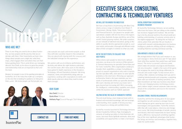 Respect for people is one of the guiding principles at hunterPac , be it the many that make up a company , or the one that is looking for guidance to help grow their career . We know people ; we find people ; we place people ; we coach and mentor people , so that they will make a positive impact in the companies they are placed with , leaving both the company and the individual stronger for the experience .