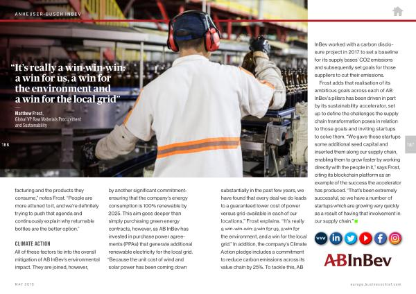 All of these factors tie into the overall mitigation of AB InBev ’ s environmental impact . They are joined , however , by another significant commitment : ensuring that the company ’ s energy consumption is 100 % renewable by 2025 . This aim goes deeper than simply purchasing green energy contracts , however , as AB InBev has invested in purchase power agreements ( PPAs ) that generate additional renewable electricity for the local grid . “ Because the unit cost of wind and solar power has been coming down