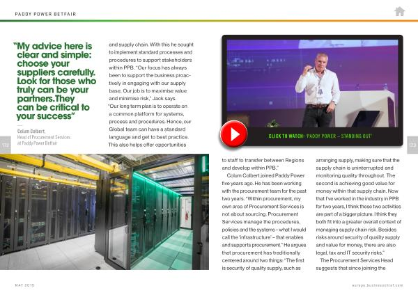 — Colum Colbert , Head of Procurement Services at Paddy Power Betfair and supply chain . With this he sought to implement standard processes and procedures to support stakeholders within PPB . “ Our focus has always been to support the business proactively in engaging with our supply base . Our job is to maximise value and minimise risk ,” Jack says . “ Our long term plan is to operate on a common platform for systems , process and procedures . Hence , our Global team can have a standard language and get to best practice . This also helps offer opportunities