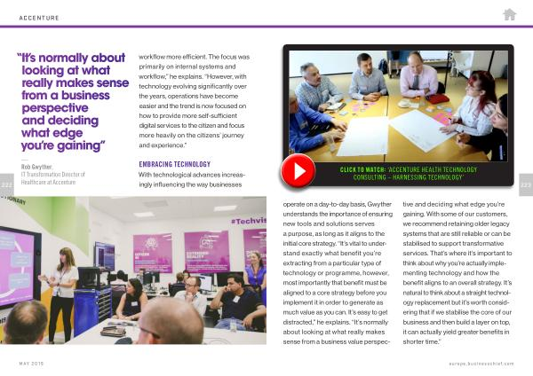 — Rob Gwyther , IT Transformation Director of Healthcare at Accenture workflow more efficient . The focus was primarily on internal systems and workflow ,” he explains . “ However , with technology evolving significantly over the years , operations have become easier and the trend is now focused on how to provide more self-sufficient digital services to the citizen and focus more heavily on the citizens ’ journey and experience .”