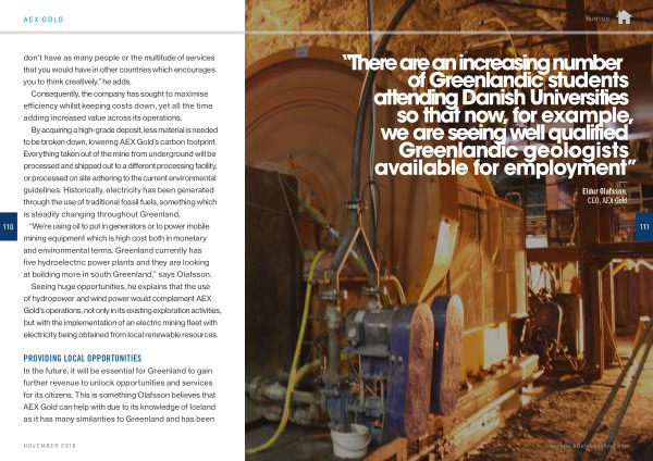 By acquiring a high-grade deposit , less material is needed to be broken down , lowering AEX Gold ’ s carbon footprint . Everything taken out of the mine from underground will be processed and shipped out to a different processing facility , or processed on site adhering to the current environmental guidelines . Historically , electricity has been generated through the use of traditional fossil fuels , something which is steadily changing throughout Greenland .