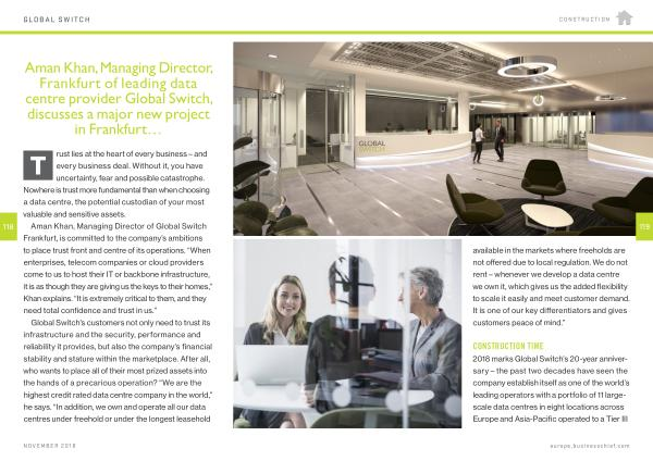 Aman Khan , Managing Director , Frankfurt of leading data centre provider Global Switch , discusses a major new project in Frankfurt …