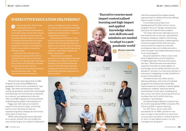 “ Wharton has long realised that its MBA Program for Executives ( EMBA ) had a geographic limit on who could attend ,” says Peggy . “ But when the world went online during the pandemic and we felt comfortable that teaching in this format was as impactful as in-person , we realised we could now offer our EMBA Program to the world whilst maintaining the quality of the experience .” Peggy says that executive students expect more options today , something borne out of necessity as they are experiencing these changes at work and in other parts of their lives .