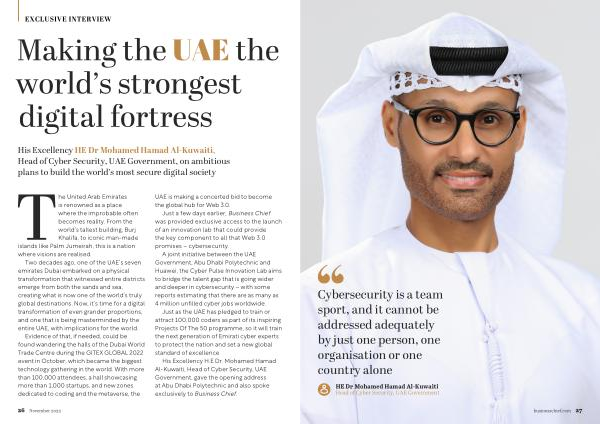 HE Dr Mohamed Hamad Al-Kuwaiti Head of Cyber Security , UAE Government businesschief . com 27
