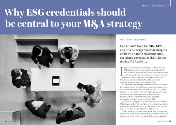 Consultants from Deloitte , KPMG and Roland Berger provide insights on how to handle environmental , social and governance ( ESG ) issues during M & A activity