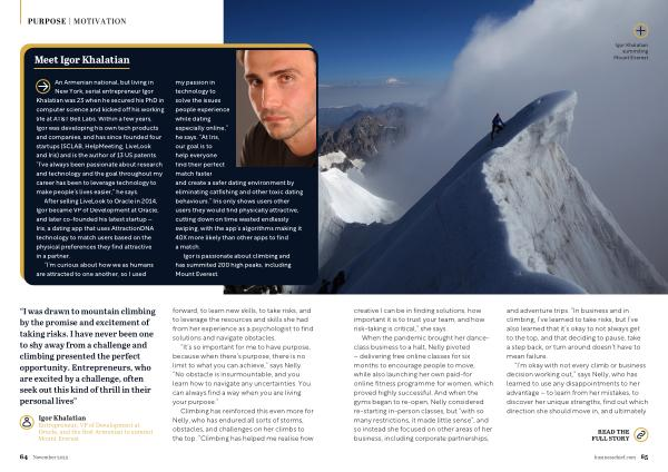 When the pandemic brought her danceclass business to a halt , Nelly pivoted – delivering free online classes for six months to encourage people to move , while also launching her own paid-for online fitness programme for women , which proved highly successful . And when the gyms began to re-open , Nelly considered re-starting in-person classes , but “ with so many restrictions , it made little sense ”, and so instead she focused on other areas of her business , including corporate partnerships , and adventure trips . “ In business and in climbing , I ’ ve learned to take risks , but I ’ ve also learned that it ’ s okay to not always get to the top , and that deciding to pause , take a step back , or turn around doesn ’ t have to mean failure .