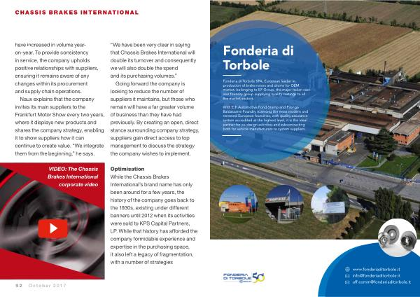 “ We have been very clear in saying that Chassis Brakes International will double its turnover and consequently we will also double the spend and its purchasing volumes .”