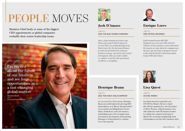 As a 30-year Coca-Cola veteran, Henrique Braun succeeded almost decade-long CEO James Quincy on 31 March. Having worked across markets including Brazil, Greater China, South Korea and Latin America, and holding senior roles in supply chain, new business development and marketing, Henrique is well positioned to continue Coca-Cola’ s growth.
